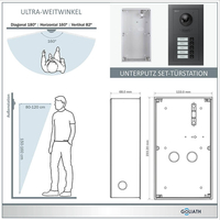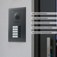 Die modulare Goliath Türstation ist mit einem eloxierten Aluminiumgehäuse ausgestattet und verfügt über ein Kamera Modul mit Full-HD und 180° Ultra-Weitwinkelobjektiv.