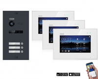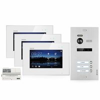 WLAN Video Türsprechanlage BALTER EVO 2-Draht BUS Komplettsystem mit Unterputz-Türstation für 3 Teilnehmer, 3x WIFI 7" Touchscreen Monitor und Hauptstromverteiler